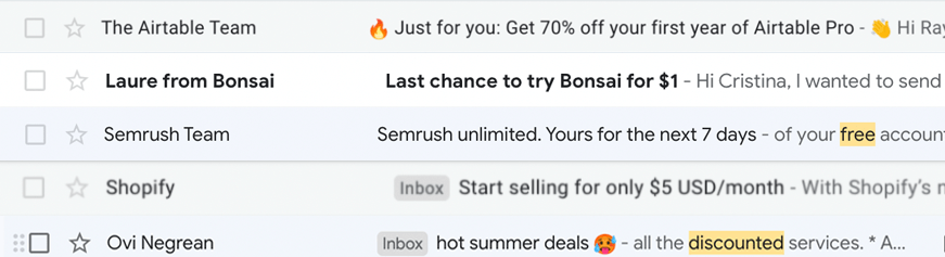 Some examples of prices and discounts subject lines: