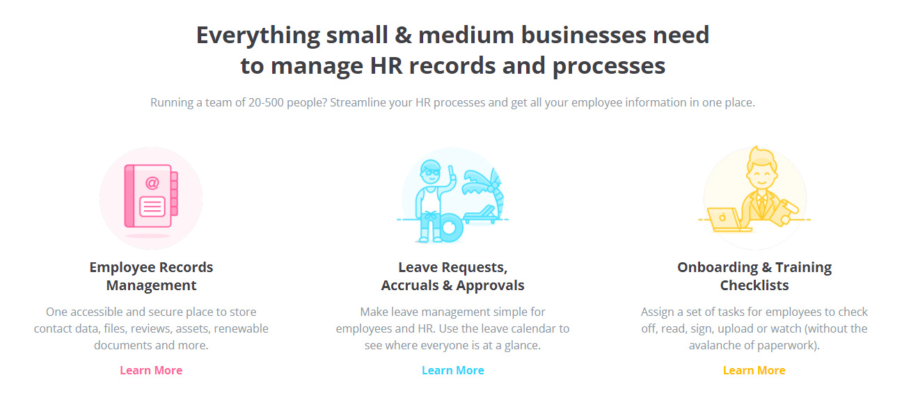 “What this will do is it will encourage people to get a fragmented view of what it is the HR Platform does. So rather than pointing to these pages at this point, if people have a specific thing that they want to know all about custom forms, have a features tab at the top and allow people to select that.”