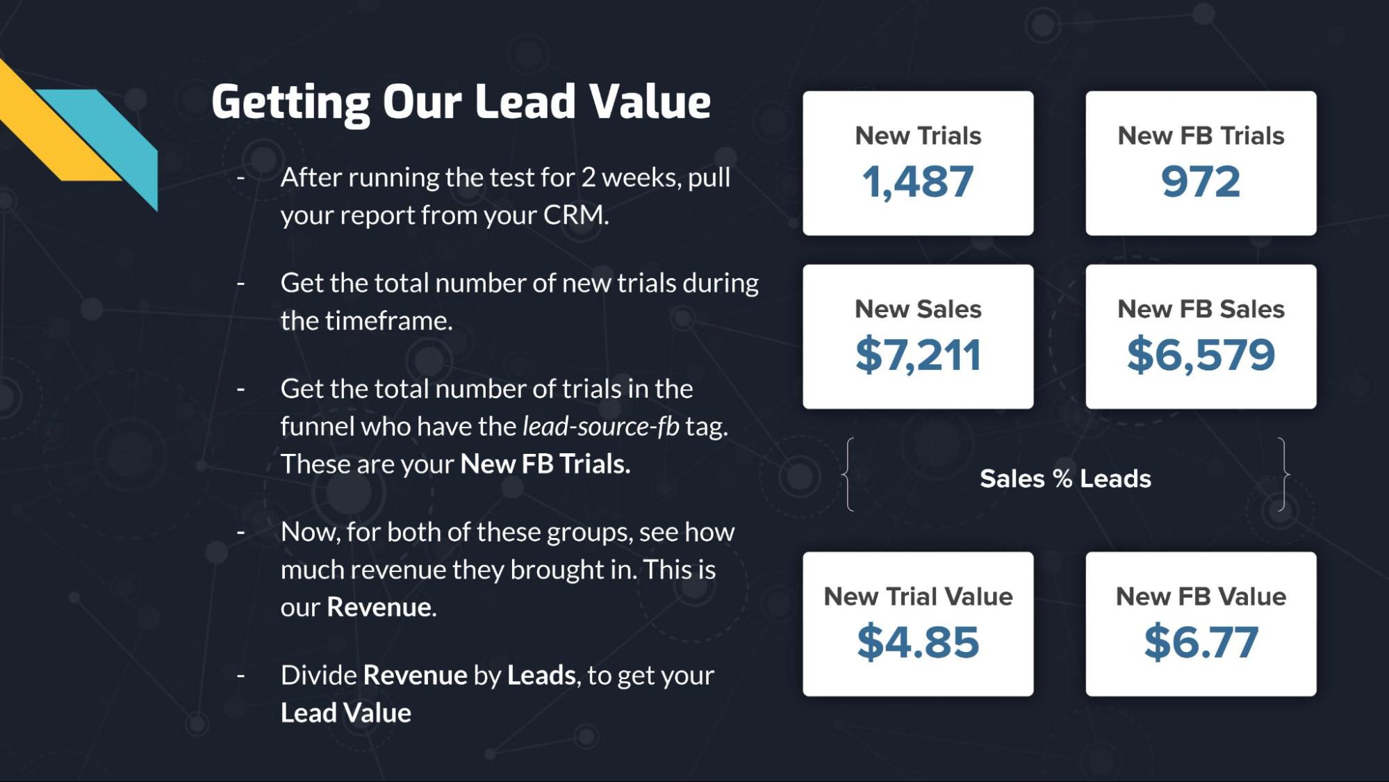 To calculate for the lead value, divide the amount of money earned by the number of leads in that segment: