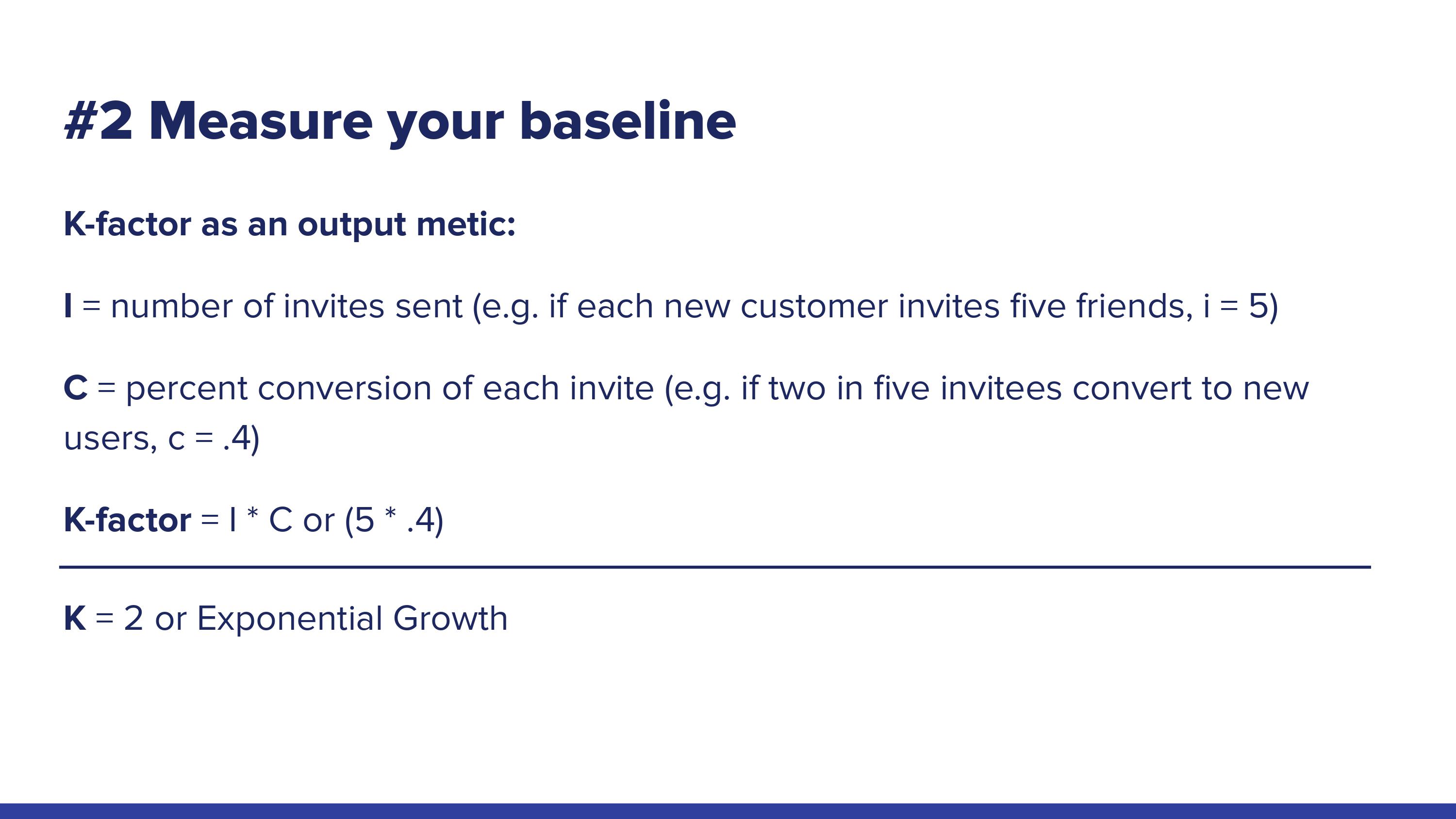 Patrick also advises measuring your K-factor as part of your baseline. The K-factor is the output metric that is used to describe the growth rate of products, which is essentially the sum of all the viral loops in your product.