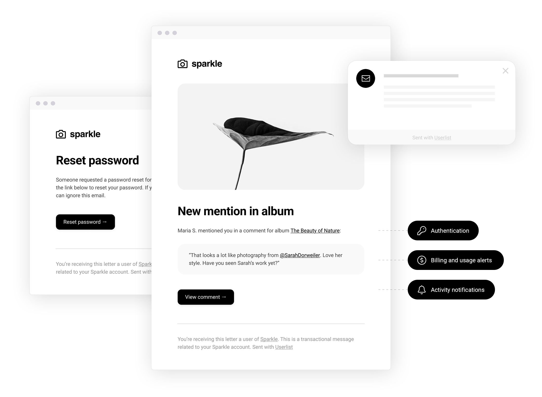 Turn your notifications and receipts into marketing opportunities. Polish, personalize, and update transactional emails (and in-app messages) without touching code.